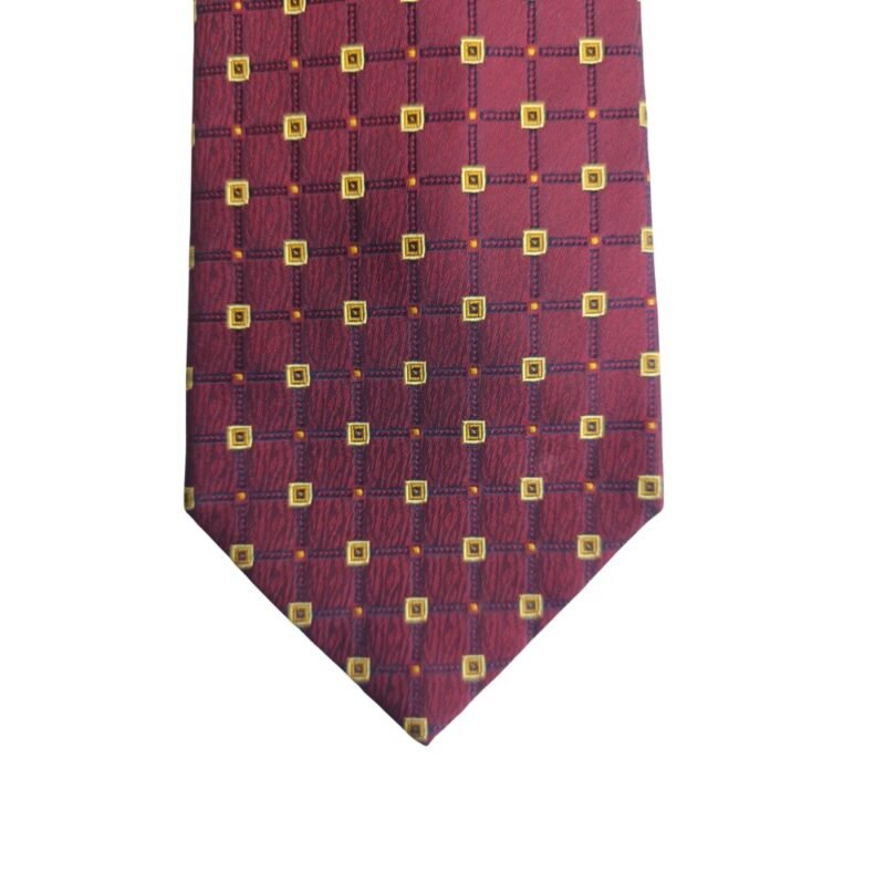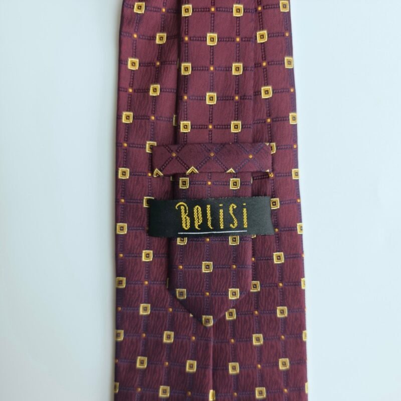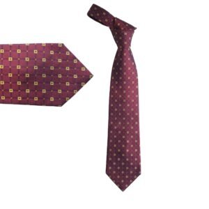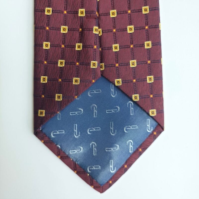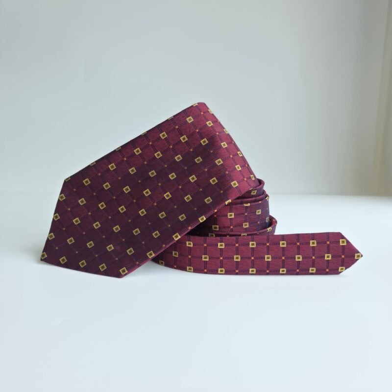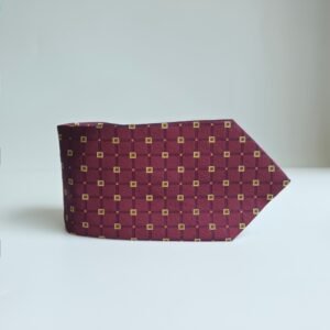 Sua tonalidade bordô profundo com padronagem geométrica em detalhes dourados cria um contraste refinado e discreto, ideal para composições clássicas e ambientes formais. O leve brilho natural da seda adiciona sofisticação na medida certa.