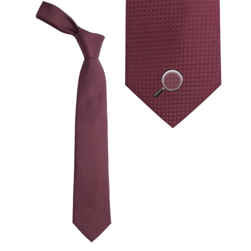 A gravata Karl Lagerfeld Paris em bordô intenso é uma peça de presença refinada. O tom vinho fechado transmite maturidade, autoridade e sofisticação, enquanto a textura geométrica discreta no tecido adiciona profundidade e um toque contemporâneo ao visual.