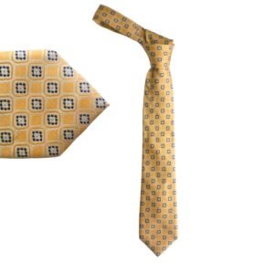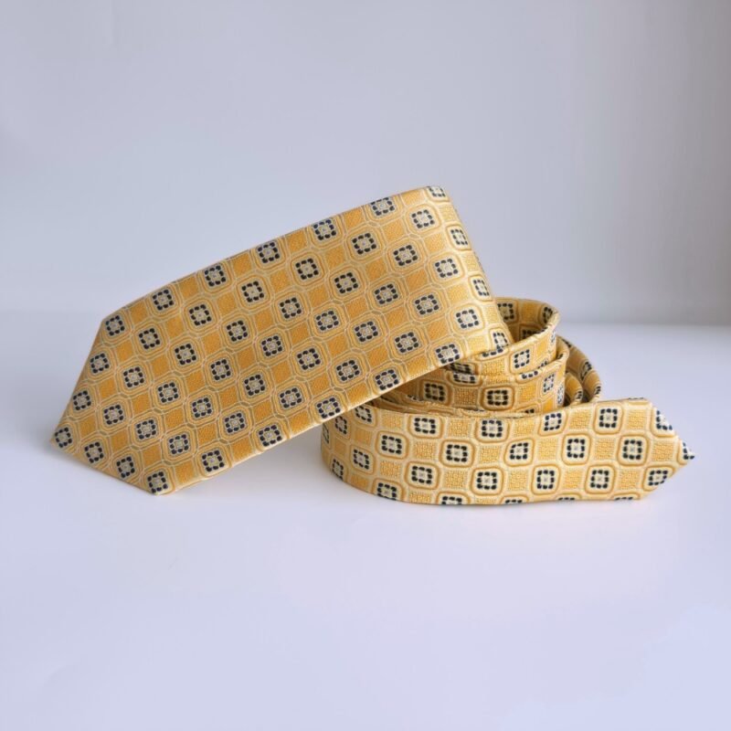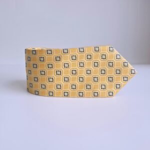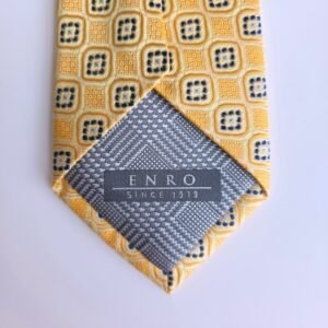 Produzida em 100% seda, a ENRO Since 1919 apresenta um elegante tom amarelo dourado, com padronagem geométrica refinada em contraste sutil, criando profundidade e personalidade na medida certa.