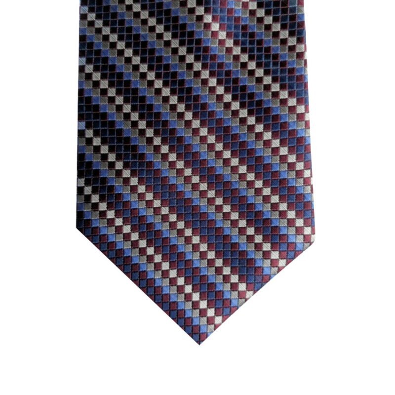A combinação de azul, vermelho e prata cria um padrão refinado e versátil, perfeito para compor trajes executivos ou sociais com personalidade. A seda proporciona caimento elegante, brilho discreto e acabamento de alto padrão.