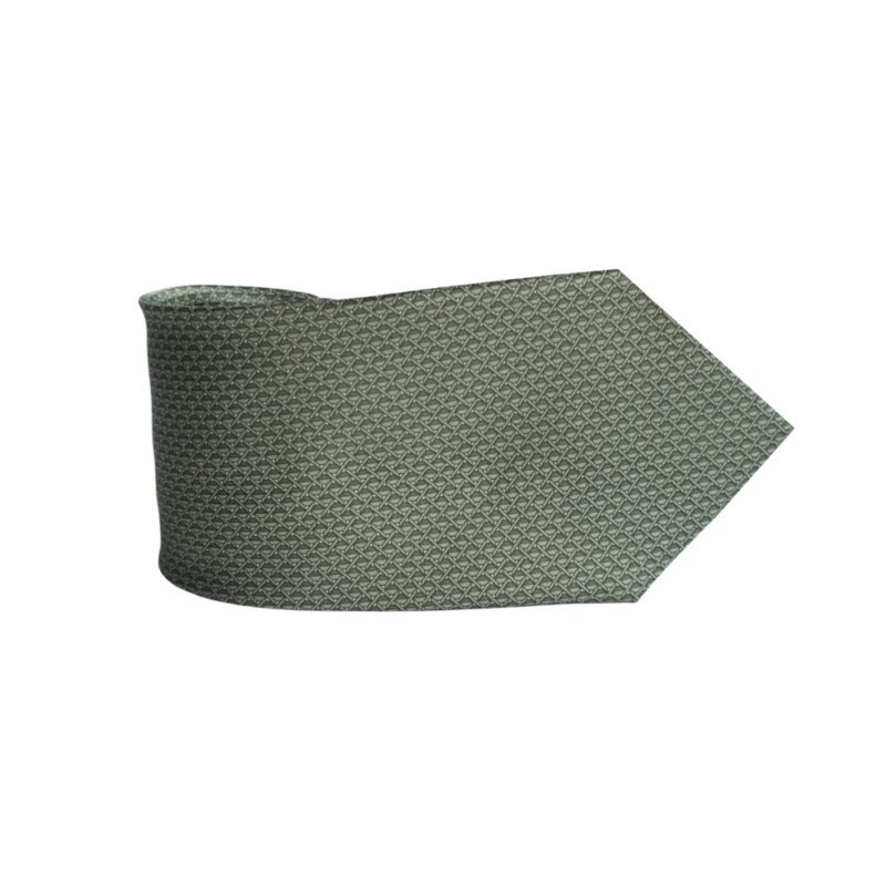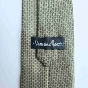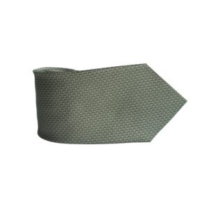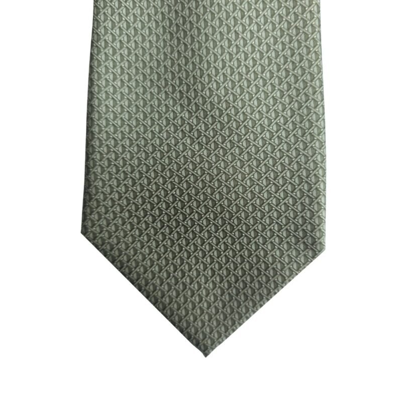 A peça apresenta tom verde oliva com padrão geométrico texturizado, criando um efeito visual sofisticado e discreto. O desenho repetido forma uma trama elegante que acrescenta profundidade e estilo à gravata sem exageros.