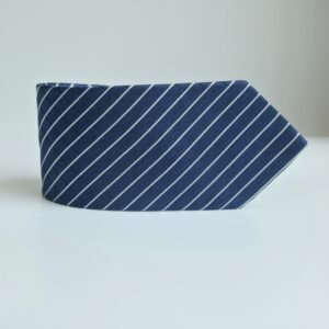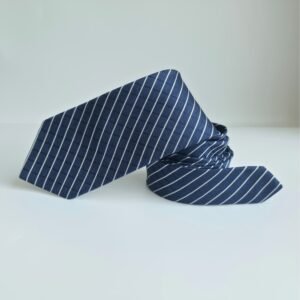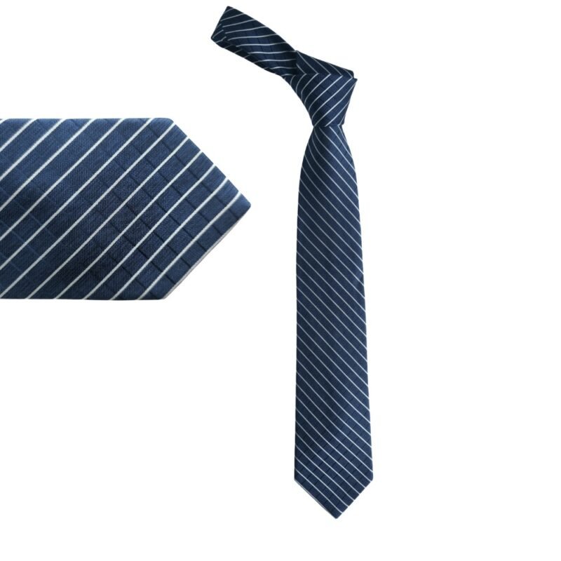 Na cor azul marinho com listras diagonais em tom claro, combinadas com um sutil padrão quadriculado ao fundo, ela transmite sobriedade, organização visual e elegância clássica. É uma peça versátil, ideal para ambiente corporativo, reuniões formais e ocasiões que exigem postura e autoridade.