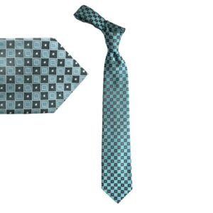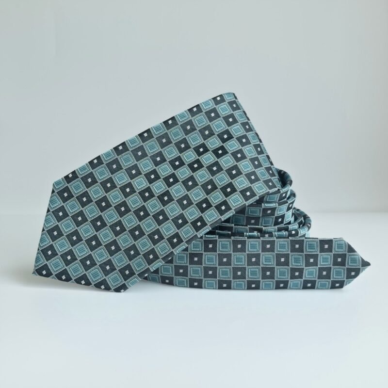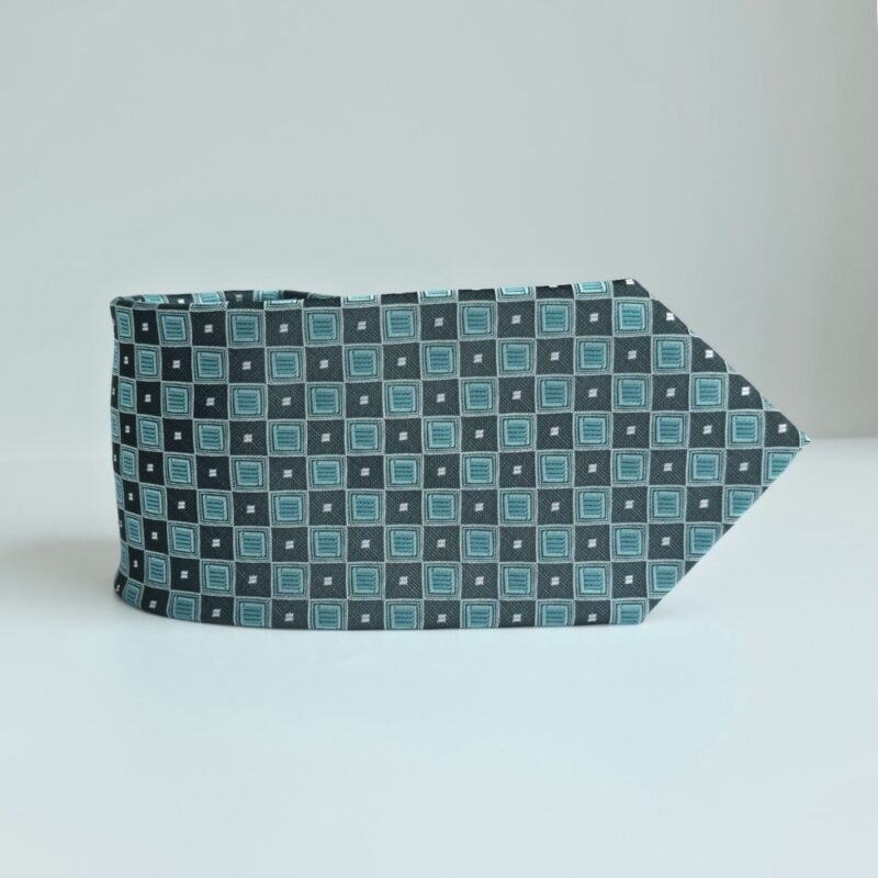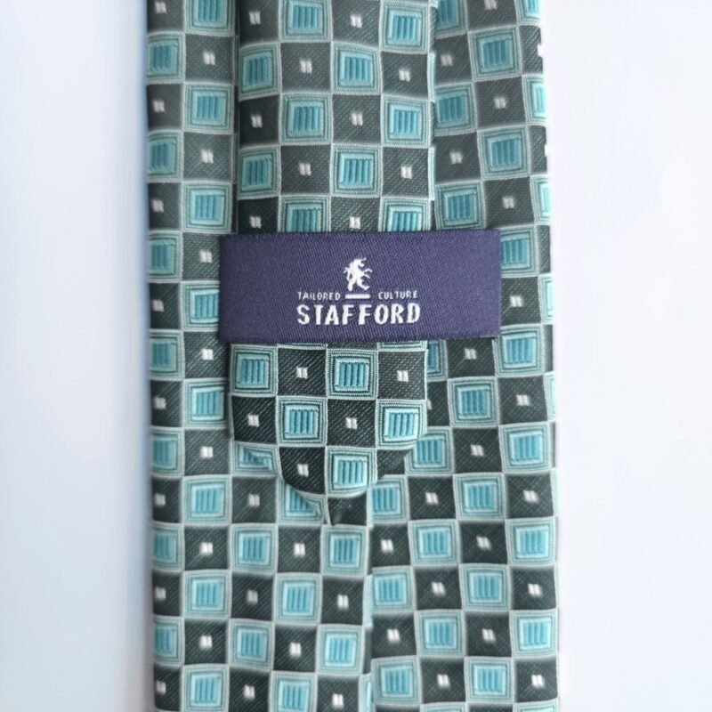 A gravata Stafford Tailored Culture apresenta uma combinação sofisticada de verde escuro com verde água, enriquecida por detalhes geométricos em branco que criam contraste elegante e moderno.