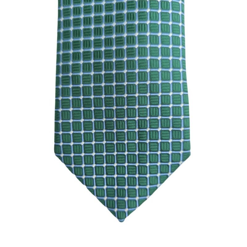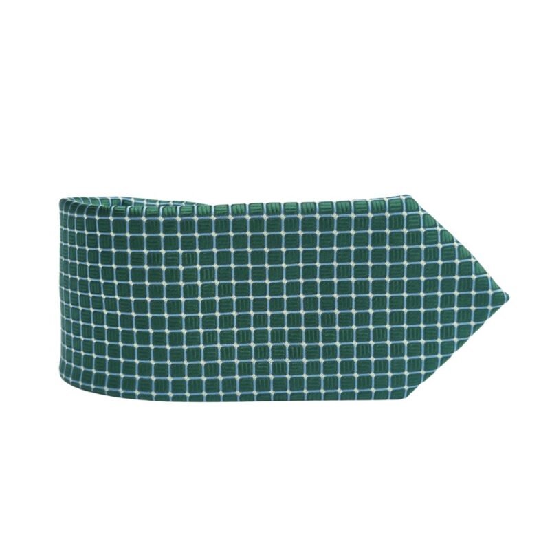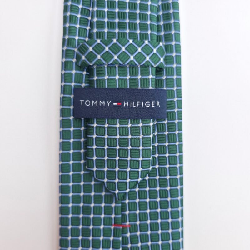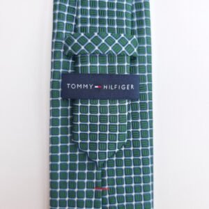 A gravata Tommy Hilfiger em verde intenso com padronagem geométrica em azul claro é uma peça de forte presença visual. O desenho estruturado transmite modernidade e organização, enquanto a combinação de cores garante sofisticação e personalidade.