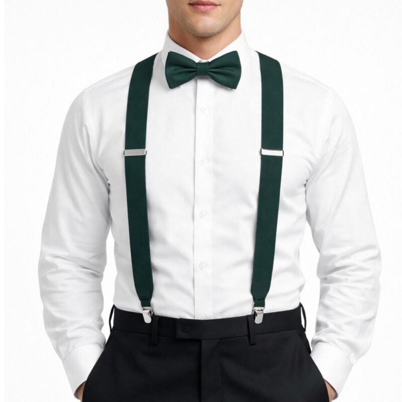O kit suspensório e gravata borboleta verde traz modernidade e charme ao traje masculino. O suspensório feito em elástico ajusta a calça com conforto e segurança, valorizando a postura de quem veste. A gravata borboleta adiciona um toque sofisticado ao colarinho, dando ao look finalidade elegante e originalidade.